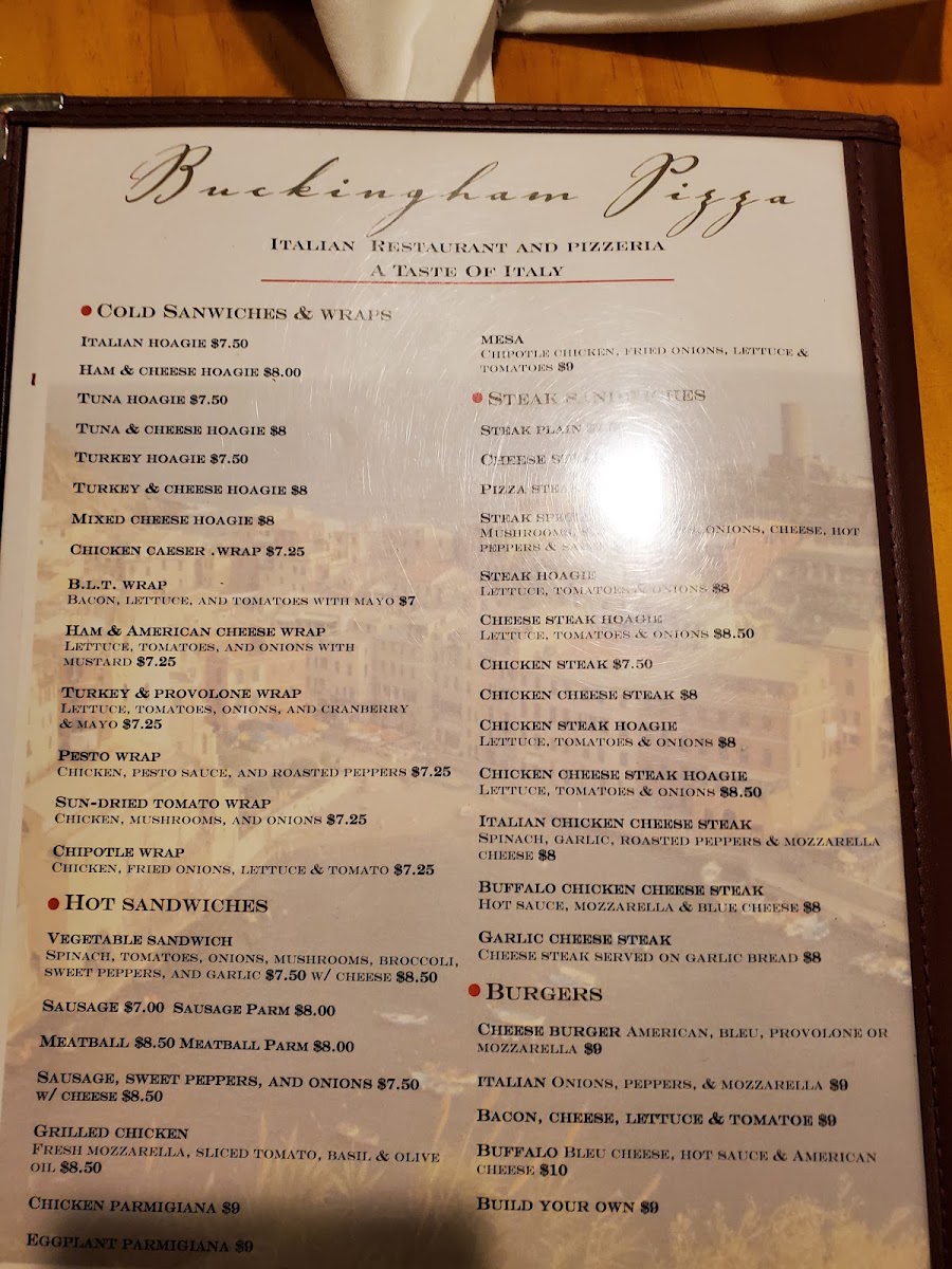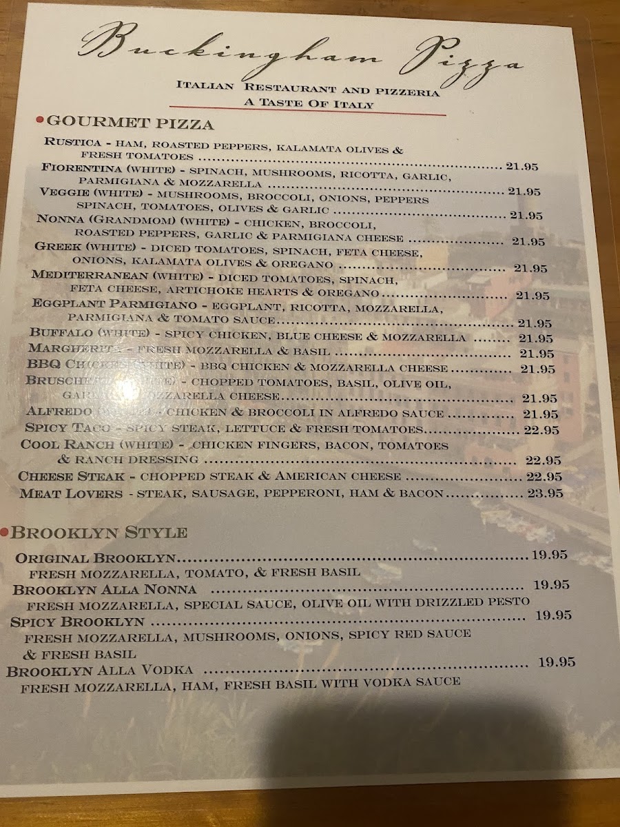 The menu at Buckingham Pizza offers a straightforward yet satisfying selection of Italian-American favorites, perfect for casual meals or relaxed gatherings. Whether you're stopping by for a quick slice or settling in for a full dinner, the variety strikes a comfortable balance between classic pizza options and hearty small plates.